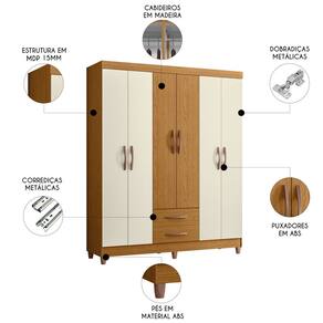 Este Guarda Roupa Solteiro 154cm 6 Portas Dony A02 Off/Cinamomo, da Mpozenato é a escolha ideal para quem busca organização, resistência e sofisticação no Quarto de Solteiro.