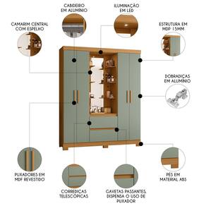 Com um camarim central, equipado com espelho e uma luminária de LED, oferece um ambiente perfeito para você se arrumar e se maquiar com facilidade e conforto. O Guarda Roupa conta com duas gavetas, que possuem corrediças telescópicas para um deslizamento suave e durável, oferecendo um ótimo espaço para armazenar roupas menores e acessórios de forma organizada. Os puxadores de MDF revestidos adicionam um toque refinado e moderno ao móvel, enquanto os dois cabideiros em alumínio garantem o suporte ideal para pendurar suas roupas de forma prática e eficiente. A estrutura do móvel também é reforçada com quatro portas de dobradiças metálicas, que oferecem resistência e durabilidade. Com uma combinação de compartimentos, gavetas e cabideiros, ele proporciona um ambiente organizado e otimizado. Seu design moderno e os acabamentos de alta qualidade tornam este móvel uma excelente escolha para quem busca aliar estilo e funcionalidade em seu Quarto.