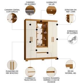 Com um camarim central, equipado com espelho e uma luminária de LED, oferece um ambiente perfeito para você se arrumar e se maquiar com facilidade e conforto. O Guarda Roupa conta com duas gavetas, que possuem corrediças telescópicas para um deslizamento suave e durável, oferecendo um ótimo espaço para armazenar roupas menores e acessórios de forma organizada. Os puxadores de MDF revestidos adicionam um toque refinado e moderno ao móvel, enquanto os dois cabideiros em alumínio garantem o suporte ideal para pendurar suas roupas de forma prática e eficiente. A estrutura do móvel também é reforçada com quatro portas de dobradiças metálicas, que oferecem resistência e durabilidade. Com uma combinação de compartimentos, gavetas e cabideiros, ele proporciona um ambiente organizado e otimizado. Seu design moderno e os acabamentos de alta qualidade tornam este móvel uma excelente escolha para quem busca aliar estilo e funcionalidade em seu Quarto.