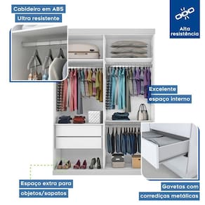 Guarda Roupa Solteiro 2 Porta De Correr Kiara Minastex Branco Por detrás de todo quarto organizado há um móvel resistente e de qualidade. Com este magnífico Guarda Roupa Lila o espaço ganhará contornos mais sofisticados e ficará muito mais organizado. Tenha roupas e acessórios sempre ao seu alcance. Aproveite! Dimensões: Altura; 218 cm Largura; 138 cm Profundidade; 53,5 cm