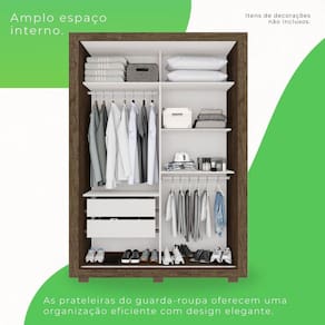 Este lindo Guarda Roupa Costa Rica Sallêto é fabricado em MDP/MDF, diferenciado pela sua resistência, durabilidade, funcionalidade e beleza, ele é a melhor opção para deixar seu dormitório mais arrumado e convidativo. Com corrediças telescópicas que permitem uma abertura total das gavetas, Portas de correr com trilho em alumínio com trava de segurança evitando que a porta se solte do trilho, costa inteiriça sem perfil H, parte interna clean toda branca, divisões internas amplas quem oferecem praticidade e organização, contando também com sapateira embutida. Se encaixa facilmente em vários estilos de decoração. Aproveite, você merece! Acabamento da Prateleira: Pintura Texturizada UV Escala de Brilho da Prateleira: Semi-Fosco Possui Cabideiros: 01 Acabamento da Gaveta: Pintura Texturizada UV Escala de Brilho da Gaveta: Brilhante Possui Organizador de Gaveta: Não Acabamento da Porta: Pintura Texturizada UV Escala de Brilho da Porta: Semi-Fosco Material do Puxador da Porta: MDF Altura dos Pés: 5 cm Altura Máxima dos Pés: 5.0000 Ambiente Principal: Quarto codigo_ean: 7909903555408 Complexidade da Montagem: Média: pode ser montado por mais de uma pessoa e/ou necessite de maior conhecimento para montagem Cor: Ipê Cor do Produto: Ipê Cor Flex: Off-White Escala de Brilho: Semi-Fosco Gaveta com Chave: Não Itens Inclusos: 1 Guarda Roupa, Kit Ferragens e Manual de Montagem. Linha ou Coleção: Costa Rica Manual de Montagem e Instalação: https://product-hub-prd.madeiramadeira.com.br/891234/documents/cb7ac549-40bb-44f1-96e6-daef2ffb4b6e74260roupeiropanama2portas.pdf Material da Gaveta: MDF Material da Porta: MDP Material da Prateleira: MDP Material dos Pés: Polipropileno Material Principal: MDF/MDP modular: Não Montagem Flex: SIM, OPÇÃO DE ESCOLHER COMO MONTAR AS PORTAS. Necessita Montagem: Sim Origem do Produto: Nacional Peso: 74,9 kg Peso Máximo por Gaveta: 3 kg Peso Máximo por Prateleira: 3 kg Possui Calceiros: 01 Possui Espelho: Não Possui Nichos: Não Possui Pés: 06 Possui Portas: Sim Possui Prateleiras: Sim Produto Montado: Sim Quantidade de Gavetas: 02 Gavetas Recomendações de Uso, Manutenção e Limpeza: Limpar com flanela ou pano macio seco. Não utilizar produtos abrasivos. Não expor o produto diretamente à luz solar e à umidade. Sistema de Montagem: Parafusos, Cavilhas e Puxadores. Tipo de Corrediça da Gaveta: Metálica Telescópica Tipo de Dobradiça/Corrediça da Porta: Metálica Tipo de Gaveta: Interna Tipo de Guarda-Roupa: Solteiro Tipo de Puxador da Gaveta: Externo Tipo de Puxador da Porta: Externo