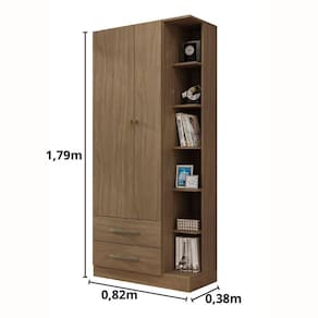 O guarda roupa Moju é moderno, prático e funcional! Se adapta a qualquer ambiente, seja ele o seu quarto, cozinha ou área de serviço. Ideal para guardar roupas, calçados, produtos de limpeza e higiene, é muito bem dividido, possui 4 prateleiras internas e mais 6 externas. Na parte inferior conta com 2 gavetas, com corrediças metálicas. Este móvel é produzido 100% em MDP. Acabamento da Prateleira: Pintura UV Escala de Brilho da Prateleira: Fosco Possui Cabideiros: Não Acabamento da Gaveta: Pintura UV Escala de Brilho da Gaveta: Fosco Material do Puxador da Gaveta: ABS Possui Organizador de Gaveta: Não Acabamento da Porta: Pintura UV Escala de Brilho da Porta: Fosco Material do Puxador da Porta: ABS Altura do Espelho: cm Ambiente Principal: Quarto Complexidade da Montagem: Média: pode ser montado por mais de uma pessoa e/ou necessite de maior conhecimento para montagem Cor: Nogueira Cor do Produto: Nogueira Cor Interna: Nogueira Escala de Brilho: Fosco Espessura do Espelho: mm Gaveta com Chave: Não Itens Inclusos: 1 Guarda-Roupa, Kit Ferragens e Manual de Montagem. Largura do Espelho: cm Manual de Montagem e Instalação: https://cdn2.madeiramadeira.com.br/atributo/mapi-marafon/1205766-manual-2002.pdf Material da Gaveta: MDP Material da Porta: MDP Material da Prateleira: MDP Material Principal: MDP Necessita Montagem: Sim Origem do Produto: Nacional Peso: 46 Peso Máximo por Gaveta: 5 Peso Máximo por Prateleira: 5 Possui Calceiros: Não Possui Espelho: Não Possui Pés: Não Possui Portas: 02 Possui Prateleiras: 10 Recomendações de Uso, Manutenção e Limpeza: Limpeza com pano umedecido. Não aplicar lustra móveis. Sistema de Montagem: Parafusos, Cavilhas e Buchas Cilíndricas Tipo de Corrediça da Gaveta: Metálica Simples Tipo de Dobradiça/Corrediça da Porta: Metálica Tipo de Gaveta: Externa Tipo de Guarda-Roupa: Solteiro Tipo de Puxador da Gaveta: Externo Tipo de Puxador da Porta: Externo Marca: Marafon Móveis