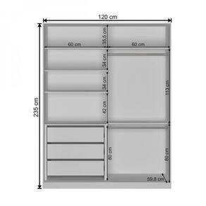 +M%F3veis+com+design+contempor%E2neo+e+cores+diferenciadas+que+se+harmonizam+facilmente+com+todos+os+estilos+de+ambientes.+Linha+de+produtos+com+alta+resist%EAncia+desenvolvidos+100%25+em+MDF%2C+com+o+objetivo+de+atender+todas+as+necessidades+do+mercado+nacional. Acabamento da Prateleira: Pintura Texturizada UV Escala de Brilho da Prateleira: Fosco Possui Cabideiros: 02 Acabamento da Gaveta: Pintura Texturizada UV Escala de Brilho da Gaveta: Fosco Possui Organizador de Gaveta: Não Acabamento da Porta: Pintura Texturizada UV Escala de Brilho da Porta: Fosco Material do Puxador da Porta: Alumínio : 235 cm Ambiente Principal: Quarto calculo: unidade Complexidade da Montagem: Média: pode ser montado por mais de uma pessoa e/ou necessite de maior conhecimento para montagem Cr: Branco e Noce Cr do Produto: Branco e Noce Cr Flex: Não Cr Interna: Branco Escala de Brilho: Fosco Estilo: Moderno Gaveta com Chave: Não Itens Inclusos: 1 Guarda Roupa e Manual de Montagem : 120 cm Linha ou Coleção: Manual de Montagem e Instalação: https://cdn2.madeiramadeira.com.br/atributo/nova-mobile/562211-7898463860421-rc2005-23-2e-manual-de-montagem.pdf Material da Gaveta: MDF Material da Porta: MDF Material da Prateleira: MDF Material Principal: MDF Montagem Flex: Não Necessita Montagem: Sim Origem do Produto: Nacional Peso: 123 kg Peso Máximo por Gaveta: 5 kg Peso Máximo por Prateleira: 15 kg Possui Calceiros: Não Possui Espelho: Não Possui Espelho Interno: Não Possui Gavetas: 03 Possui Painel de TV: Não Possui Pés: Não Possui Portas: 02 Possui Prateleiras: 06 : 59 cm Recomendações de Uso, Manutenção e Limpeza: Para a limpeza do móvel utilizar uma flanela seca. Sistema de Montagem: Parafusos, Cavilhas e Minifix. status-cadastro: Aprovado Tamanho: Tipo de Corrediça da Gaveta: Metálica Telescópica Tipo de Dobradiça/Corrediça da Porta: Alumínio Tipo de Gaveta: Interna Tipo de Guarda-Roupa: Solteiro Tipo de Porta: Correr Tipo de Puxador da Gaveta: Não Possui Tipo de Puxador da Porta: Embutido