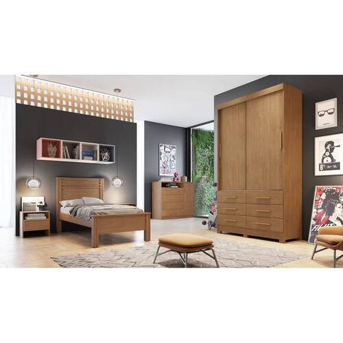 Guarda Roupa Solteiro 2 Portas 6 Gavetas - Buriti-Cumaru - Móveis Novo Horizonte O Guarda Roupa Buriti vai proporcionar um ambiente aconchegante mantendo um visual sofisticado e funcional. Composto por peças de extrema qualidade e com excelente espaço interno bem distribuídos, oferecendo máxima organização de forma prática. Fabricado em 100% MDP, 2 portas de correr, possui 6 gavetas com corrediças telescópicas, puxadores com acabamento amadeirado e cabideiros em alumínio. Amplo espaço interno. Aproveite! Faz parte do anúncio: 1 Guarda Roupa Solteiro 2 Portas 6 Gavetas - Buriti - Móveis Novo Horizonte Obs. Objetos de decoração não inclusos Particularidades do guarda-roupa: Características: - 100% MDP; - Puxadores com acabamento amadeirado; - 6 Gavetas com corrediças telescópicas; - Trilho inferior em alumínio; - Roldanas com rolamento; - Cabideiros em alumínio; - Pés inclusos; Dimensões: Altura: 2,05 metros Largura: 1,20 metros Profundidade: 46,5 centímetros Informações Importantes:. -Produtos podem apresentar diferenças de tonalidades entre a foto na tela e o produto real, devido a calibração de cor de tela. -Limpar com flanela ou pano macio. Não utilizar álcool. Não utilizar produtos abrasivos ou corrosivos. -Nós prezamos pela qualidade da entrega em primeiro lugar, trabalhamos com transportadoras altamente selecionadas e os melhores materiais de embalagem. -A montagem é de total responsabilidade do comprador. Antes de comprar, verifique o espaço disponível para a montagem. -Certifique-se de que o produto caiba em elevadores e vãos de escadas, não fazemos içamentos. Quaisquer despesas deste tipo ficam a cargo do cliente -Garantia de 3 meses contra defeitos de fabricação.