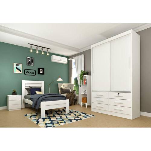 Guarda Roupa Solteiro 2 Portas 6 Gavetas - Chicago-Neve - Tcil Móveis