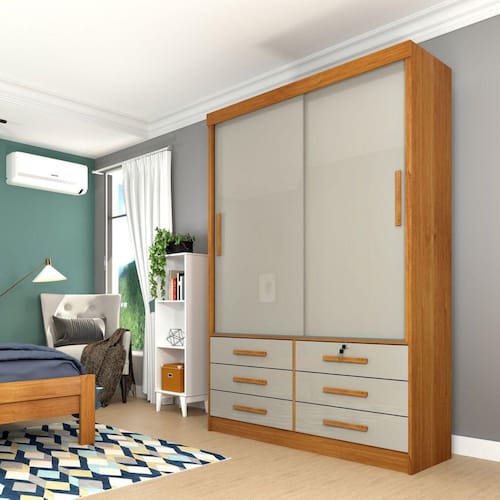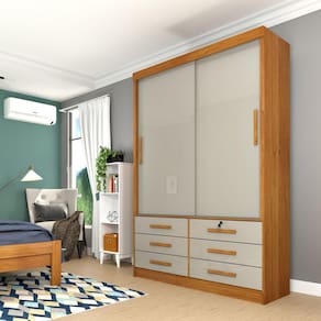 O Guarda Roupa Chicago é ideal para deixar o ambiente harmonioso e elegante para o ambiente. O mesmo possui amplo espaço de armazenação com roupeiro com MDP, corrediças telescópicas, 9 gavetas externas , trilho inferior em alumínio , cabideiros em alumínio e puxadores em PVC Acabamento da Prateleira: Pintura Escala de Brilho da Prateleira: Semi-Brilho Possui Cabideiros: 02 Acabamento da Gaveta: Pintura Escala de Brilho da Gaveta: Semi-Brilho Possui Organizador de Gaveta: Não Acabamento da Porta: Pintura Escala de Brilho da Porta: Semi-Brilho Ambiente Principal: Quarto Complexidade da Montagem: Alta: deve ser montado por um montador especializado Cor: Cinamomo/Off White Cor do Produto: Cinamomo/Off White Escala de Brilho: Semi-Brilho Gaveta com Chave: Não Itens Inclusos: 1 Guarda Roupa, Kit Ferragens e Manual de Montagem Linha ou Coleção: Chicago Manual de Montagem e Instalação: https://cdn2.madeiramadeira.com.br/atributo/tcil-moveis/636436-manual-de-montagem-roupeiro-2-portas-chicago.pdf Material da Gaveta: MDP Material da Porta: MDP Material da Prateleira: MDP Material Principal: MDP Necessita Montagem: Sim Origem do Produto: Nacional Peso: 97,8 kg Peso Máximo por Gaveta: 10 kg Peso Máximo por Prateleira: 10 kg Possui Calceiros: Não Possui Espelho: Não Possui Pés: Não Possui Portas: 02 Possui Prateleiras: 03 Recomendações de Uso, Manutenção e Limpeza: Para a limpeza utilizar pano umedecido, em água, sabão neutro e escova cerdas macias, deixando secar a sombra. Em caso de excesso de poeira, usar aspirador de pó. Sistema de Montagem: Parafusos, cavilhas e pregos Tipo de Corrediça da Gaveta: Metálica Telescópica Tipo de Dobradiça/Corrediça da Porta: Metálica Tipo de Gaveta: Externa Tipo de Guarda-Roupa: Solteiro Tipo de Puxador da Gaveta: Externo Tipo de Puxador da Porta: Externo