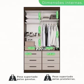 Este lindo Guarda Roupa Luana Sallêto é fabricado em MDP/MDF, diferenciado pela sua resistência, durabilidade, funcionalidade e beleza, ele é a melhor opção para deixar seu dormitório mais arrumado e convidativo. Com corrediças telescópicas que permitem uma abertura total das gavetas, Portas de correr com trilho em alumínio com trava de segurança evitando que a porta se solte do trilho, costa inteiriça sem perfil H, parte interna clean e espaçosa, divisões internas quem oferecem praticidade e organização, puxadores de madeira que garante maior durabilidade. Se encaixa facilmente em vários estilos de decoração. Aproveite, Móveis Sallêto você merece! Acabamento da Prateleira: Pintura UV Escala de Brilho da Prateleira: Semi-Brilho Possui Cabideiros: Sim Acabamento da Gaveta: Pintura Texturizada UV Possui Organizador de Gaveta: Não Acabamento da Porta: Pintura UV Escala de Brilho da Porta: Semi-Brilho Ambiente Principal: Quarto codigo_ean: 7900288057679 Complexidade da Montagem: Alta: deve ser montado por um montador especializado Cor: Savana/Off Cor do Produto: Savana/Off Escala de Brilho: Semi-Brilho Espessura da Estrutura (mm): 12 mm Espessura das Portas (mm): 12 mm Espessura das Prateleiras (mm): 12 mm Espessura do Fundo (mm): 3 mm Espessura do Fundo das Gavetas (mm): 3 mm Gaveta com Chave: Não Itens Inclusos: 1 Guarda Roupa, Kit ferragens + Manual de montagem Linha ou Coleção: Luana Manual de Montagem e Instalação: https://product-hub-prd.madeiramadeira.com.br/831050/documents/8fa2e076-f8d3-49d3-9d92-e75dd767e5b6roupeirostarsalleto2portas.pdf Marca: Sallêto Móveis Material da Gaveta: MDF/MDP Material da Porta: MDP Material da Prateleira: MDP Material Principal: MDF/MDP modular: Não Necessita Montagem: Sim Origem do Produto: Nacional Peso: 78,3 kg Peso Máximo por Gaveta: 5 kg Peso Máximo por Prateleira: 3 kg Possui Calceiros: Não Possui Espelho: Não Possui Pés: Não Possui Portas: Sim Possui Prateleiras: Sim Recomendações de Uso, Manutenção e Limpeza: Limpar com flanela ou pano macio seco. Não utilizar produtos abrasivos. Não expor o produto diretamente à luz solar e à umidade. Sistema de Montagem: Parafusos, Cavilhas , Minifix, Dobradiças e Puxadores. Tipo de Corrediça da Gaveta: Metálica Telescópica Tipo de Dobradiça/Corrediça da Porta: Telescópica Tipo de Gaveta: Externa Tipo de Guarda-Roupa: Solteiro Tipo de Puxador da Gaveta: Externo Tipo de Puxador da Porta: Externo