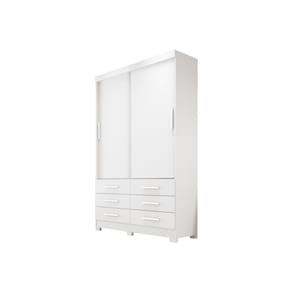 Particularidades do guarda-roupa: Características: - 100% MDP; - Puxadores com acabamento amadeirado; - 6 Gavetas com corrediças telescópicas; - Trilho inferior em alumínio; - Roldanas com rolamento; - Cabideiros em alumínio; - Pés inclusos;