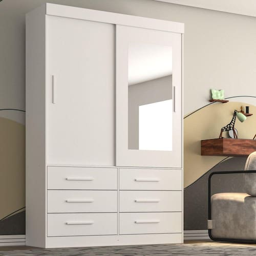 Este lindo Guarda Roupa Luana Sallêto é fabricado em MDP/MDF, diferenciado pela sua resistência, durabilidade, funcionalidade e beleza, ele é a marromhor opção para deixar seu dormitório mais arrumado e convidativo. Com corrediças telescópicas que permitem uma abertura total das gavetas, Portas de correr com trilho em alumínio com trava de segurança evitando que a porta se solte do trilho, costa inteiriça sem perfil H, parte interna clean e espaçosa, divisões internas quem oferecem praticidade e organização, puxadores de madeira que garante maior durabilidade. Se encaixa facilmente em vários estilos de decoração. Aproveite, Móveis Sallêto você merece! Acabamento da Prateleira: Pintura UV Escala de Brilho da Prateleira: Brilhante Possui Cabideiros: 01 Acabamento da Gaveta: Pintura UV Escala de Brilho da Gaveta: Material do Puxador da Gaveta: Possui Organizador de Gaveta: Não Acabamento da Porta: Pintura UV Escala de Brilho da Porta: Brilhante Material do Puxador da Porta: Acabamento dos Pés: Acompanha Cama Auxiliar: Acompanha Colchão: Altura da Cama: Altura do Espelho: 80 Altura do Espelho 01: Altura do Espelho 02: Altura do Espelho 03: Altura do Espelho 04: Altura do Espelho 05: Altura do Espelho 06: Altura dos Pés: Ambiente Principal: Cozinha Cama Auxiliar Acompanha Colchão: Cama Auxiliar Suporta Até (kg): Cama Suporta Até (kg): Complexidade da Montagem: Alta: deve ser montado por um montador especializado Cor: Branco Cor do Produto: Branco Cor Flex: Cor Interna: Branco Escala de Brilho: Brilhante Espessura do Espelho: 3 Fita Integrada: Formato do Espelho: Retangular Gaveta com Chave: Não Guarda-Roupa Suporta Até (kg): Informações Complementares: Itens Inclusos: 1 Guarda Roupa, Kit Ferragens e Manual de Montagem Largura da Cama: Largura do Espelho: 47 Largura do Espelho 01: Largura do Espelho 02: Largura do Espelho 03: Largura do Espelho 04: Largura do Espelho 05: Largura do Espelho 06: Linha ou Coleção: Luana Manual de Especificação Técnica: Manual de Montagem e Instalação: https://cdn2.madeiramadeira.com.br/atributo/salleto/1198702-roupeiro-star-salleto-2-portas.pdf Material da Gaveta: MDF/MDP Material da Porta: MDP Material da Prateleira: MDP Material dos Pés: Material Principal: MDP Montagem Flex: Necessita Montagem: Sim Origem do Produto: Nacional Peso: 81.3 Peso Máximo por Gaveta: 5 Peso Máximo por Prateleira: 5 Possui Calceiros: Não Possui Espaço para Vestidos Longos: Possui Espelho: Sim Possui Espelho Interno: Possui Ganchos: Possui iluminação: Possui Painel de TV: Possui Pés: Não Possui Portas: 02 Possui Prateleiras: 03 Possui Sapateira: Profundida de Cama: Quantidade de Espelho: 01 Recomendações de Uso, Manutenção e Limpeza: Limpar com flanela ou pano Pano levemente umedecido e pano seco. Não utilizar produtos de limpezamacio seco. Não utilizar produtos abrasivos. Não expor o produto diretamente à luz solar e à umidade. Sapatas Niveladoras: Sistema de Montagem: Parafusos, Cavilhas , Minifix, Dobradiças e Puxadores. Tamanho do Colchão Indicado (L x C): Tamanho do Colchão Indicado Cama Auxiliar: Tipo de Corrediça da Gaveta: Metálica Telescópica Tipo de Dobradiça/Corrediça da Porta: Alumínio Tipo de Estrado: Tipo de Fixação do Espelho: Parafusos Tipo de Gaveta: Externa Tipo de Guarda-Roupa: Solteiro Tipo de Madeira Maciça: Tipo de Madeira Maciça da Gaveta: Tipo de Madeira Maciça da Porta: Tipo de Madeira Maciça da Prateleira: Tipo de Madeira Maciça do Puxador da Gaveta: Tipo de Madeira Maciça do Puxador da Porta: Tipo de Madeira Maciça dos Pés: Tipo de Puxador da Gaveta: Externo Tipo de Puxador da Porta: Externo