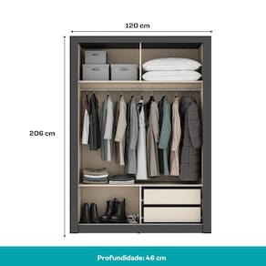 Medidas totais: Largura: 120 cm | Altura: 206 cm | Profundidade: 46,0 cm