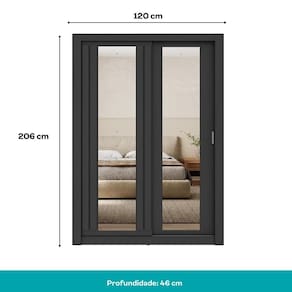 Especificações do Guarda-Roupa: Medidas totais: Largura: 120 cm | Altura: 206 cm | Profundidade: 46,0 cm Peso total: 71,7 Kg
