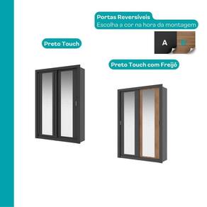 Além disso, possui espelhos nas duas portas, agregando amplitude ao ambiente, enquanto os puxadores metálicos garantem um toque elegante e sofisticado.