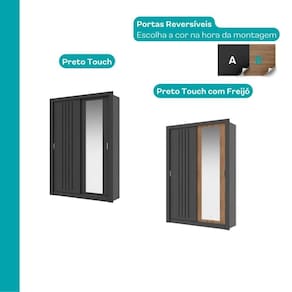Além disso, o espelho da porta direita agrega amplitude ao ambiente, enquanto os puxadores metálicos garantem um toque elegante e sofisticado.