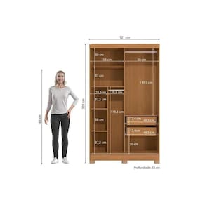 Dimensões(Cm): Comprimento(Profundidade): 53cm x Largura: 120,5cm x Altura: 205cm