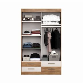 Caracteristicas: 2 portas de correr com configuracao dupla face 4 gavetas com corredicas telescopicas 1 cabideiro 4 prateleiras internas Estrutura reforcada