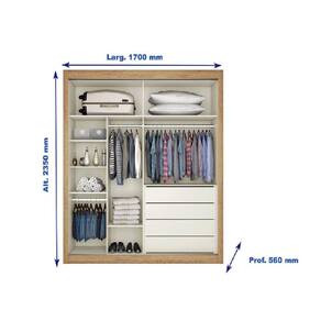 ROUPEIRO ZURIQUE 100% MDF possui 6 prateleiras,2 cabideiros e 1 calceiro em alumínio. Possui também modulação para roupas longas e prateleiras removíveis. Além de ser um produto lindo e funcional, proporciona ao cliente praticidade ao acomodar todas as roupas de maneira organizada com 04 gavetas com corrediças telescópicas. As roldanas em aço com molas e o trilho inferior em alumínio tem a função de potencializar o deslizar das portas. Este modelo é fabricado com chapas de MDF . As portas possuem perfil puxador de alumínio na cor bronze. Acabamento da Prateleira: Pintura Texturizada UV Escala de Brilho da Prateleira: Semi-Brilho Possui Cabideiros: 03 Acabamento da Gaveta: Pintura Texturizada UV Escala de Brilho da Gaveta: Semi-Brilho Material do Puxador da Gaveta: MDF Possui Organizador de Gaveta: Não Acabamento da Porta: Pintura Texturizada UV Escala de Brilho da Porta: Semi-Brilho Material do Puxador da Porta: Alumínio Acabamento dos Pés: Acompanha Cama Auxiliar: Acompanha Colchão: Altura da Cama: Altura do Espelho: Altura do Espelho 01: Altura do Espelho 02: Altura do Espelho 03: Altura do Espelho 04: Altura do Espelho 05: Altura do Espelho 06: Altura dos Pés: Ambiente Principal: Quarto Cama Auxiliar Acompanha Colchão: Cama Auxiliar Suporta Até (kg): Cama Suporta Até (kg): Complexidade da Montagem: Alta: deve ser montado por um montador especializado Cor: Amêndoa/Off White Cor do Produto: Amêndoa/Off White Cor Flex: Cor Interna: Off White Escala de Brilho: Semi-Brilho Espessura do Espelho: Fita Integrada: Formato do Espelho: Gaveta com Chave: Não Guarda-Roupa Suporta Até (kg): Informações Complementares: Itens Inclusos: 1 Guarda Roupa, Kit Ferragens e Manual de Montagem Largura da Cama: Largura do Espelho: Largura do Espelho 01: Largura do Espelho 02: Largura do Espelho 03: Largura do Espelho 04: Largura do Espelho 05: Largura do Espelho 06: Linha ou Coleção: Manual de Especificação Técnica: Manual de Montagem e Instalação: https://cdn2.madeiramadeira.com.br/atributo/moveis-europa/952885-esquema-de-montagem-roupeiro-zurique.pdf Material da Gaveta: MDF Material da Porta: MDF Material da Prateleira: MDF Material dos Pés: Material Principal: MDF Montagem Flex: Necessita Montagem: Sim Origem do Produto: Nacional Peso: 161 Peso Máximo por Gaveta: 3 Peso Máximo por Prateleira: 5 Possui Calceiros: 01 Possui Espaço para Vestidos Longos: Possui Espelho: Não Possui Espelho Interno: Possui Ganchos: Possui iluminação: Possui Painel de TV: Possui Pés: Não Possui Portas: 02 Possui Prateleiras: 07 Possui Sapateira: Profundida de Cama: Quantidade de Espelho: Recomendações de Uso, Manutenção e Limpeza: Utilize somente pano seco Sapatas Niveladoras: Sistema de Montagem: Parafuso, cavilha, minifix e tapa furo. Tamanho do Colchão Indicado (L x C): Tamanho do Colchão Indicado Cama Auxiliar: Tipo de Corrediça da Gaveta: Metálica Telescópica Tipo de Dobradiça/Corrediça da Porta: Alumínio Tipo de Estrado: Tipo de Fixação do Espelho: Tipo de Gaveta: Interna Tipo de Guarda-Roupa: Solteiro Tipo de Madeira Maciça: Tipo de Madeira Maciça da Gaveta: Tipo de Madeira Maciça da Porta: Tipo de Madeira Maciça da Prateleira: Tipo de Madeira Maciça do Puxador da Gaveta: Tipo de Madeira Maciça do Puxador da Porta: Tipo de Madeira Maciça dos Pés: Tipo de Puxador da Gaveta: Não Possui Tipo de Puxador da Porta: Externo