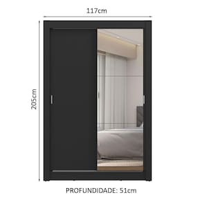 Medidas totais: 205 cm de altura x 117 cm de largura x 51 cm de profundidade.