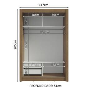 Medidas totais: 205 cm de altura x 117 cm de largura x 51 cm de profundidade.
