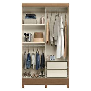 Guarda Roupa Solteiro 2 portas de correr com espelho e pés Fit Jequitibá Acetinado- Santos Andirá