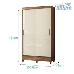 Guarda Roupa Solteiro 2 portas de correr com pés Fit Jequitibá Off Acetinado - Santos Andirá