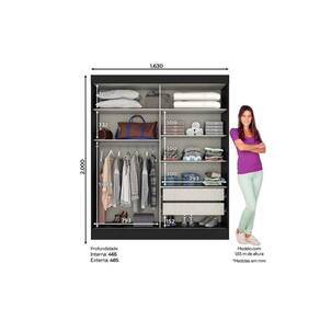 Dimensões(Cm): Comprimento(Profundidade): 163cm x Largura: 49cm x Altura: 200cm