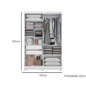 Dimensões(Cm): Comprimento(Profundidade): 53cm x Largura: 143cm x Altura: 223cm