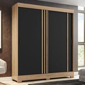 O Roupeiro 02 Portas Deslizantes B353 foi feito para agradar todos os gostos. Possui A 200 x L 159 x P 48 Cm, produzido em MDP, o produto possui portas reversíveis “Flex” e conta com Cabideiro resistente de madeira revestido, 02 gavetas com corrediças metálicas, puxadores em alumínio bronze e 02 portas deslizante com apliques ripados, é ideal para compor seu ambiente e trazer graça para o lar! Cor: Jequitibá/Preto Altura (cm): 200 Largura (cm): 159 Profundidade (cm): 48 Cor Interna: Trama Escala de Brilho: Brilho Ambiente: Quarto Acabamento: Pintura UV Texturizada Possui Vidros: Material Principal: MDP Produto Suporta até (Kg): 55 Kg Possui Espelho: Não Possui Gavetas: Sim - Quantidade: 2 Und. - Peso Maximo Suportado por Gaveta: 3 Kg Possui Pés: Sim Quantidade de Pés: 6 Und. - Material dos Pés: ABS Possui Portas: Sim - Quantidade: 2 Und. - Tipo: Correr Possui Prateleiras: Sim - Peso Maximo por Prateleira: 8 Kg - Quantidade: 5 Und. Recomendações de Uso, Manutenção e Limpeza: Para limpeza de seu móvel, use uma flanela limpa e seca. Não utilize produtos químicos que possam danificar o produto. Sistema de Montagem: Parafusos e Cavilhas Necessita Montagem: Sim Complexidade da Montagem: Alta: Deve ser montado por um montador especializado. Itens Inclusos: 1 Guarda Roupa e Instrução de Montagem Garantia: 90 Dias