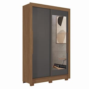 Guarda Roupa Solteiro 2 portas de correr com espelho Lapa com espelho Jatobá Grafite - Santos Andirá