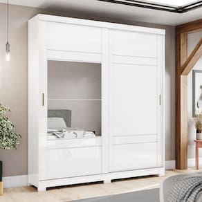 FICHA TÉCNICA: Cor Interna: Pintura UV Texturizada Acabamento: Pintura UV Escala de Brilho: Brilhante Material Principal: MDP Qtd. Gavetas: 3 Peso Máximo por Gaveta: 3 Material do Puxador Gaveta: Alumínio Material da Corrediça: Metálica Simples Material da Gaveta: MDP Qtd. Portas: 2 Material das Portas: MDP Material da Dobradiça: Metálica Material do Puxador Porta: Alumínio Tipo Porta: Correr Qtd. Prateleiras: 5 Peso Máximo por Prateleira: 8 Material da Prateleira: MDP Qtd. Pés: 6 Pés Reguláveis: Não Material Pés: ABS Altura Pés/Rodapés: 50 mm Possui Rodízios: Não Produto Suporte até -Kg-: 49 Possui Vidro: Não Possui Espelho: 2 Medida do Espelho: 77,8 x 51,5 x 0,3 Cm Possui Espaço para Vestidos Longos: 1 Possui Iluminação: Não Possui Ganchos: Não Medidas Montado: 230 x 200 x 50 Cm Peso Montado: 125 Kg Ean: 7890022110930