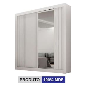 Guarda Roupa Solteiro 2 Portas Milano com Espelho Branco Leifer Móveis