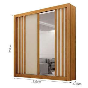 Guarda Roupa Solteiro 2 Portas Milano com Espelho Cinamomo Off White Leifer Móveis