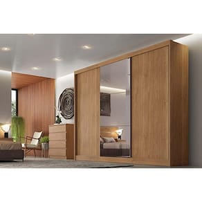 Guarda Roupa Solteiro 3 Portas (1 c/ Espelho) e 6 Gavetas Toulon/Sonetto Plus Cumaru - Horizonte