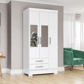 O Guarda-Roupas com 3 portas de abrir, com espelho foi desenvolvido para oferecer praticidade no seu dia a dia, proporcionando muito mais comodidade na hora de organizar suas roupas, com 2 gavetas na parte externa para organização de peças menores, com corrediças metálicas que permite um deslize mais seguro e suave. Ideal para ambientes com pouco espaço. Guarda-Roupas com pés, altura de 1850 mm, largura de 825 mm e profundidade de 465 mm. Produzido em MDP e pintura UV. Complemente seu quarto com bom gosto e qualidade. Acabamento da Prateleira: Pintura Texturizada UV Escala de Brilho da Prateleira: Fosco Possui Cabideiros: Sim Acabamento da Gaveta: Pintura UV Escala de Brilho da Gaveta: Fosco Material do Puxador da Gaveta: ABS Possui Organizador de Gaveta: Não Acabamento da Porta: Pintura UV Escala de Brilho da Porta: Brilhante Material do Puxador da Porta: ABS Acabamento dos Pés: Pintura Altura do Espelho: 60 cm Altura dos Pés: 5 cm Ambiente Principal: Quarto codigo_ean: 7909903648322 Complexidade da Montagem: Média: pode ser montado por mais de uma pessoa e/ou necessite de maior conhecimento para montagem Cor: Branco/Rosa Chá Cor do Produto: Branco/Rosa Chá Cor Flex: Marrom/Off White Cor Interna: Trama Branco Escala de Brilho: Brilhante Espessura do Espelho: 2 mm Fita Integrada: Sim Formato do Espelho: Retangular Gaveta com Chave: Não Guarda-Roupa Suporta Até (kg): 54 kg Informações Complementares: Possui frentes em MDP com 15mm Itens Inclusos: 1 Guarda Roupa, Kit Ferragens e Manual de Montagem Largura do Espelho: 20 cm Linha ou Coleção: B16 Manual de Montagem e Instalação: https://product-hub-prd.madeiramadeira.com.br/904411/documents/cf115e79-7e04-4239-adc6-c5ba8be5375btas02gavetascompeseespelho.pdf Material da Gaveta: MDP Material da Porta: MDP Material da Prateleira: MDP Material dos Pés: ABS Material Principal: MDP modular: Não Montagem Flex: Não Necessita Montagem: Sim Origem do Produto: Nacional Peso: 51 kg Peso Máximo por Gaveta: 3 kg Peso Máximo por Prateleira: 8 kg Possui Calceiros: Não Possui Espaço para Vestidos Longos: Não Possui Espelho: Sim Possui Espelho Interno: Não Possui Ganchos: Não Possui Painel de TV: Não Possui Pés: 04 Possui Portas: Sim Possui Prateleiras: Sim Possui Sapateira: Não Produto Montado: Sim Quantidade de Espelho: 02 Espelhos com Tamanhos Iguais Quantidade de Gavetas: 02 Gavetas Quantidade de Prateleiras: 03 Prateleiras Recomendações de Uso, Manutenção e Limpeza: Para limpeza de seu móvel, use uma flanela seca ou umedecida. Não utilize produtos químicos que possam danificar o produto. Sistema de Montagem: Parafuso e Cavilhas. Suporta Até (kg): 54 kg Tipo de Corrediça da Gaveta: Metálica Simples Tipo de Dobradiça/Corrediça da Porta: Metálica Tipo de Fixação do Espelho: Fita Dupla Face Tipo de Gaveta: Externa Tipo de Guarda-Roupa: Solteiro Tipo de Puxador da Gaveta: Externo Tipo de Puxador da Porta: Externo