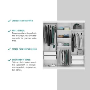 O Guarda-Roupa Marvin Solteiro Carraro é uma peça ótima para organizar e manter seu ambiente estilo. Conta com 3 portas reversíveis, podendo escolher o melhor acabamento na hora da montagem, e possui amplos espelhos nas portas laterais. Ele comporta tudo que precisa sem a preocupação de falta de espaço. A peça possui grande espeaço de cabideiros e gavetas, nichos laterais com diversas prateleiras internas, é possível armazenar roupas, acessórios e calçados, deixando tudo à mão e trazendo muita praticidade para o seu dia a dia.