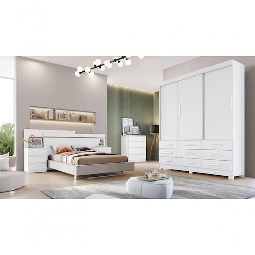 Guarda Roupa Solteiro 3 Portas 9 Gavetas - Buriti-Branco - Móveis Novo Horizonte