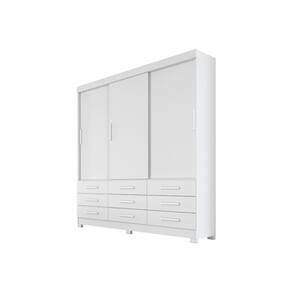 Particularidades do guarda-roupa: Características: - 100% MDP; - Puxadores com acabamento amadeirado; - 9 Gavetas com corrediças telescópicas; - Trilho inferior em alumínio; - Roldanas com rolamento; - Cabideiros em alumínio; - Pés inclusos;