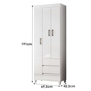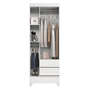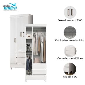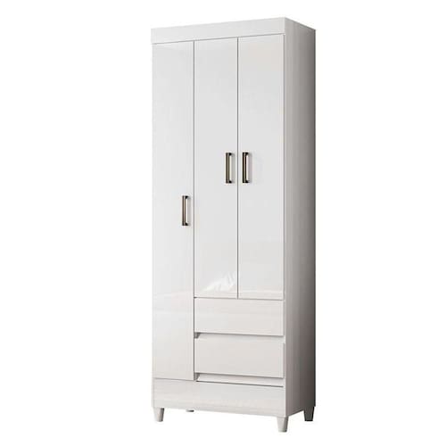 Guarda Roupa Solteiro 3 portas com pés Fit Branco Brilho - Santos Andirá