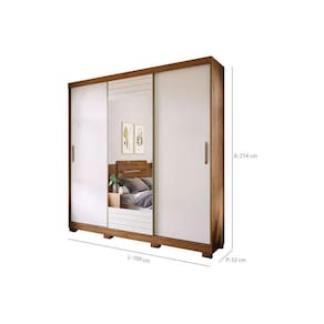 Guarda Roupa Casal 3 Portas de Correr (1 c/ Espelho) e 4 Gavetas Búzios Cinamomo/Off White - Panan