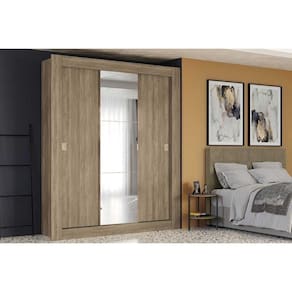 Material dos Cabideiros - Cabideira Metálico Tipo de Porta do Guarda-Roupa - Portas de Correr Material das Portas - Portas em MDP Quantidade de Portas - 3 Portas de Correr Quantidade de Portas com Espelho - 1 Porta com Espelho Tipo de Espelho - Espelho Externo Quantidade de Espelhos - 1 Espelho Quantidade de Prateleiras - 5
