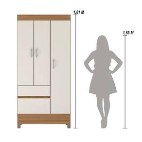 Com três portas e duas gavetas espaçosas, oferece amplo armazenamento para roupas, acessórios e objetos pessoais.