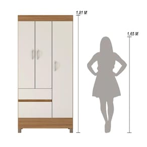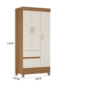 Com três portas e duas gavetas espaçosas, oferece amplo armazenamento para roupas, acessórios e objetos pessoais.
