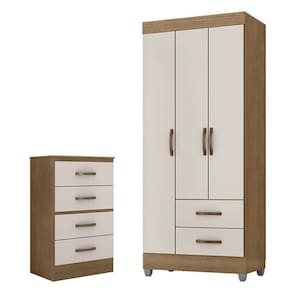Guarda Roupa Solteiro 3 Portas e Cômoda 4 Gavetas Lite Nature Off White Móveis Leão