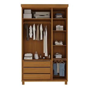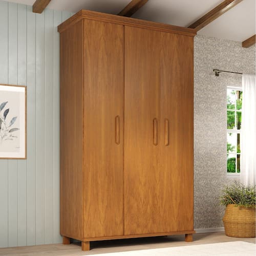 Guarda Roupa Solteiro 3 Portas em Madeira Maciça com Pés Ibiza Móveis Nathalia, uma combinação perfeita de funcionalidade e estilo. Com corrediças telescópicas, ele proporciona um deslizar suave e funcional. Fabricado com prateleiras e puxadores de madeira, seu acabamento interno e externo em verniz fosco garante um toque de elegância. Cada prateleira suporta até 15 kg, oferecendo amplo espaço para organizar suas roupas e acessórios. Transforme seu quarto com um guarda-roupa que une qualidade e design!