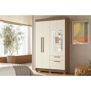 Material do Calceiro - Calceiro Metálico Material dos Cabideiros - Cabideira Metálico Tipo de Porta do Guarda-Roupa - Portas de Bater Diferenciais das Portas - Porta c/ Espelho Quantidade de Portas - 4 Portas de Abrir Quantidade de Portas com Espelho - 2 Portas com Espelho Tipo de Espelho - Espelho Externo Quantidade de Espelhos - 2 Espelhos Tipo de Corrediça - c/ Corrediças Telescópicas Quantidade de Gavetas - 2 Gavetas Material de Estrutura Fundo Gaveta - Em HDF Quantidade de Pés - 6 pés