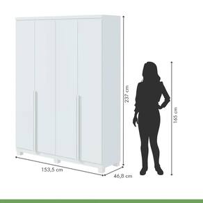 ESPECIFICAÇÕES TÉCNICAS: -Material: MDF; - Acabamento: Pintura UV; - Número de Portas: 4 Portas; - Número de Gavetas: 2 Gavetas; - Número de Nicho: 8 Nichos; - Possui Prateleira? Sim; - Possui Espelho? Não; - Possui Pés? Não; - Material dos Pés: Não Possui; - Possui Puxadores? Sim; - Material dos Puxadores: MDF; - Possui Cabideiros? Sim; - Possui Maleiro? Sim; - Possui espaço para sapatos? Sim; - Produto precisa de montagem? Sim; - Garantia: 3 Meses Contra defeito de fabricação; - Medidas: LarguraxProfundidadexAltura; 154x47x230cm;