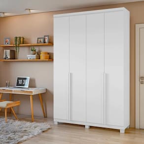Guarda Roupa Solteiro 4 Portas 2 Gavetas Alonzo Branco Mantenha seu dormitório sempre organizado com um móvel que une funcionalidade e design moderno. O Guarda-Roupa Alonzo New 4 Portas é a escolha ideal para quem busca praticidade sem abrir mão da elegâ amplo espaço interno conta com 8 nichos em diferentes tamanhos, 2 gavetas com corrediças telescópicas e cabideiros em alumínio, garantindo a acomodação perfeita para roupas, sapatos e acessórios. Já o design externo eleva o visual do ambiente, disponível em diversas combinações de cores para se adaptar ao seu estilo. Produzido em MDF com chapas de 12/15mm, possui puxadores em MDF para um acabamento sofisticado, maleiro sem divisória para mais espaço e praticidade, espaço para sapatos, mantendo tudo organizado. Além disso conta com opção de pés e espelhos, para agregar ainda mais funcionalidade e personalização ao seu quarto. ESPECIFICAÇÕES TÉCNICAS: -Material: MDF; - Acabamento: Pintura UV; - de Portas: 4 Portas; - de Gavetas: 2 Gavetas; - de Nicho: 8 Nichos; - Possui Prateleira? Sim; - Possui Espelho? Não; - Possui Pés? Não; - Material dos Pés: Não Possui; - Possui Puxadores? Sim; - Material dos Puxadores: MDF; - Possui Cabideiros? Sim; - Possui Maleiro? Sim; - Possui espaço para sapatos? Sim; - Produto precisa de montagem? Sim; - Garantia: 3 Meses Contra de fabricação; - Medidas: LarguraxProfundidadexAltura; 154x47x230cm;