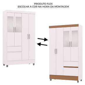 • 1 x Guarda-Roupa Solteiro 4 Portas 2 Gavetas com Espelho Ideval