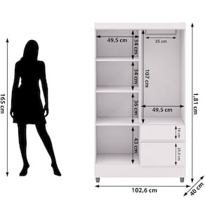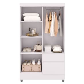 • Pintura: Cabideiro de Madeira Ajustável; Puxador Astra 128mm; Possui 3 Prateleiras;
