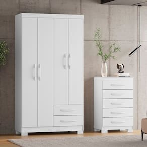 Itens Inclusos: 1 Guarda-Roupa, 1 Cômoda, Manual de Montagem e Kit Ferragem
