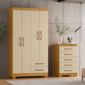 Itens Inclusos: 1 Guarda-Roupa, 1 Cômoda, Manual de Montagem e Kit Ferragem